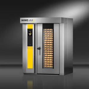 Excellent baking results, simple operation and a robust design for heavy-duty use typical for MIWE − all this and its outstanding use of space distinguish the new MIWE orbit and makes it recommendable for bakehouses and market bakeries alike. Convection wagon oven with a rotating rack (standing with rotary plate or optionally suspended) for dough pieces of all kinds. With oil, gas or electric heating.