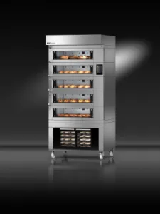 Superior baking like one of the larger models, but with a more modest surface area. Electrically heated deck oven with a gentle baking atmosphere for premium baking results. Perfectly masters the complete range of products, from delicate pastries to classic deck oven rolls and heavy breads. A masterpiece that is appreciated worldwide, suitable for any capacity needs, available in several base measurements and models with baking surface areas up to 8.5 m². With separately adjustable top and bottom heating for each stove. Used in first-class bakeries and shops, patisseries, hotels, restaurants and in the catering industry for 50 years.