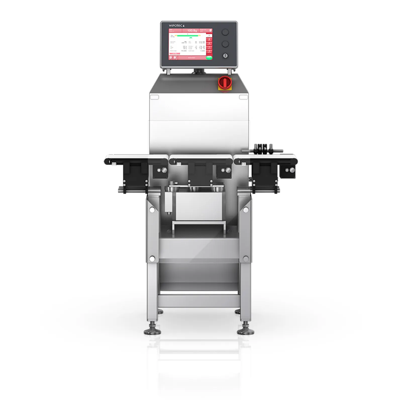 The lightweight, patented conveyor system and carefully tuned drive concept ensure smooth, fast and safe transport. A sophisticated and wide range of sorters (pusher, air blast, etc.) are available for there liable ejection of products having an incorrect weight, without interfering with the production.